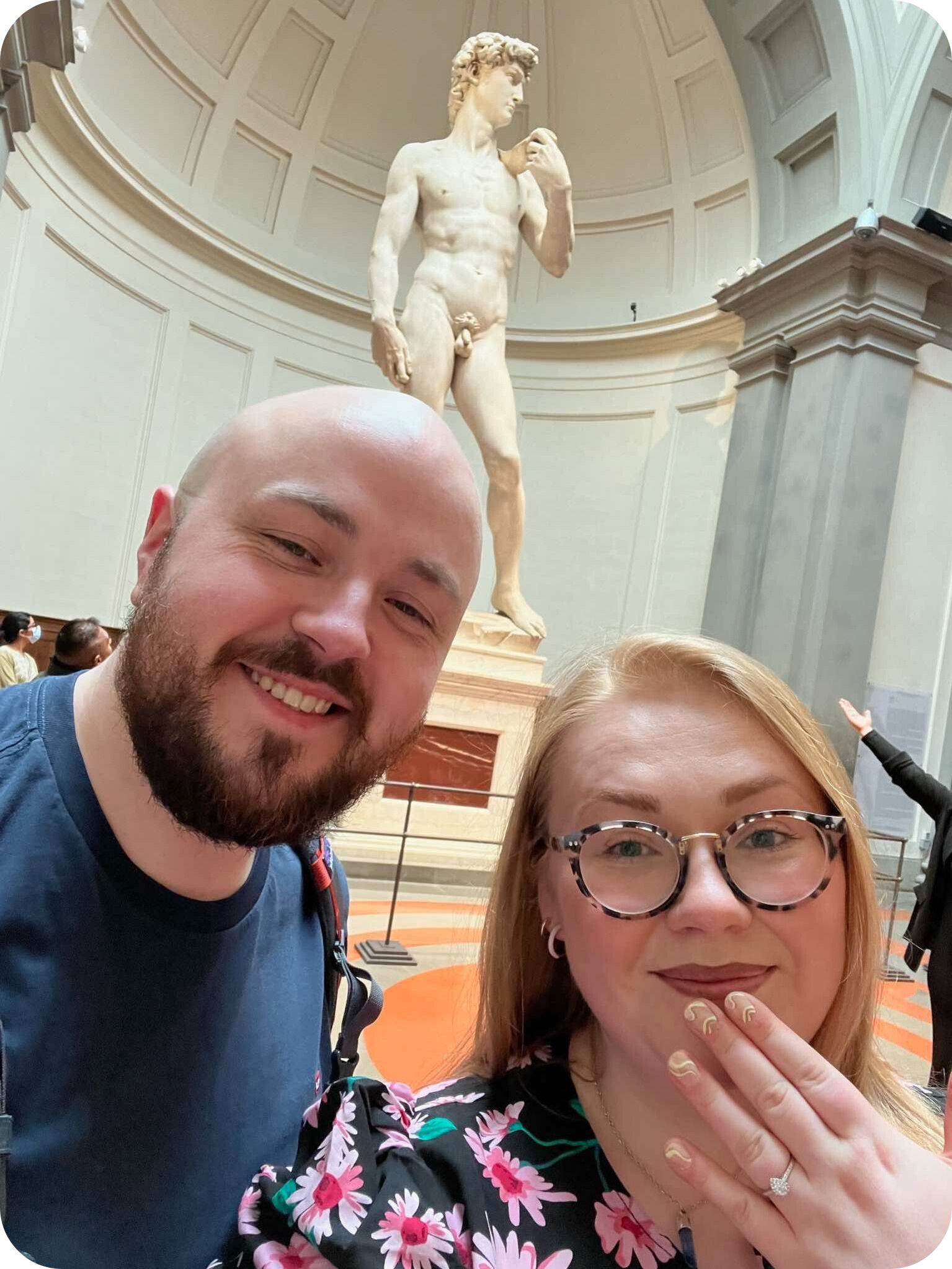 In 2021, we levelled up and moved to Glasgow, and by March 2023, Ben decided it was time to pop the question. In true BulliMack fashion, things didn’t exactly go as planned. Picture this: drunk leprechauns, a pitch-dark canal, and a car crashing into a wall at a leisurely 5 mph. Confused? So were we. Despite this Ben got down on one knee (after an intense cardio session up 5 flights of stairs to the Air BnB), Lucy breathlessly said yes (insert joke about Ben taking Lucy's breath away etc) and here we are today welcoming you to our special day.